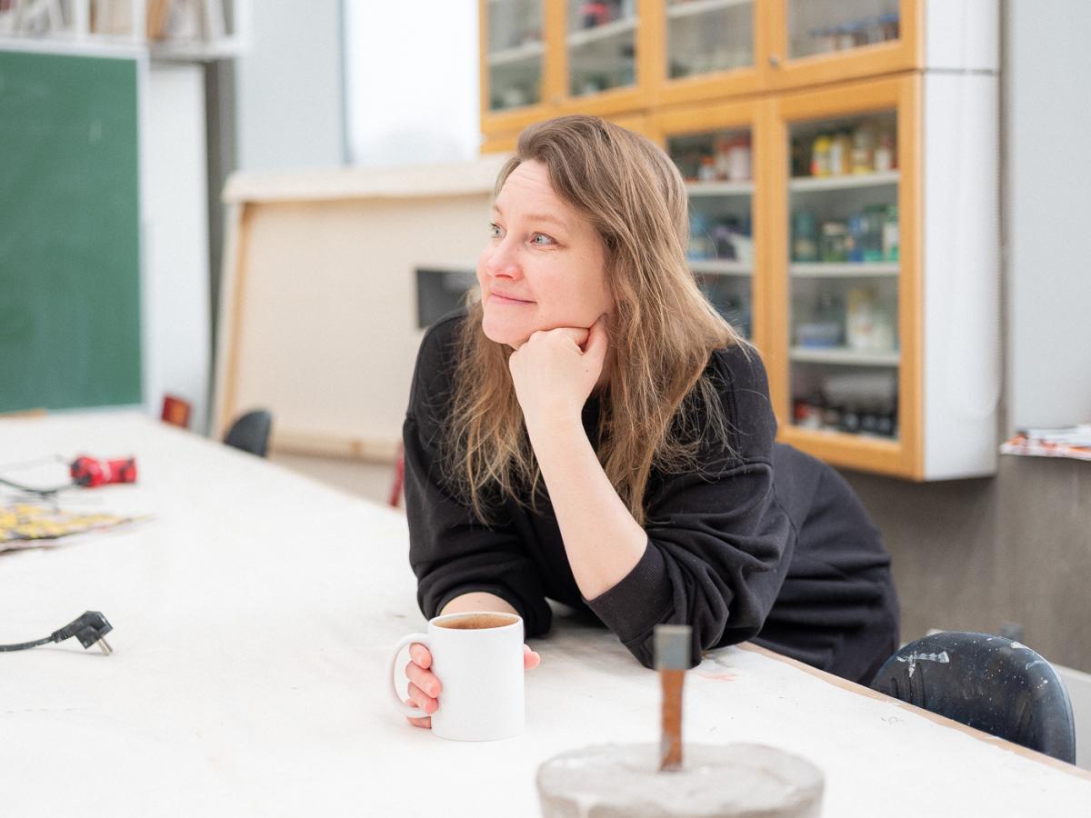 Heidi Lahtinen (b. 1984) is a visual artist living and working in Helsinki. Her techniques include tufting as well as various metal, wood and casting methods. Lahtinen works with materials such as wool extinct and endangered animal species. In some of the works, animals are presented as if their remains were found in a tar pit all jumbled together. In some works, animals appear as they were when they were alive.