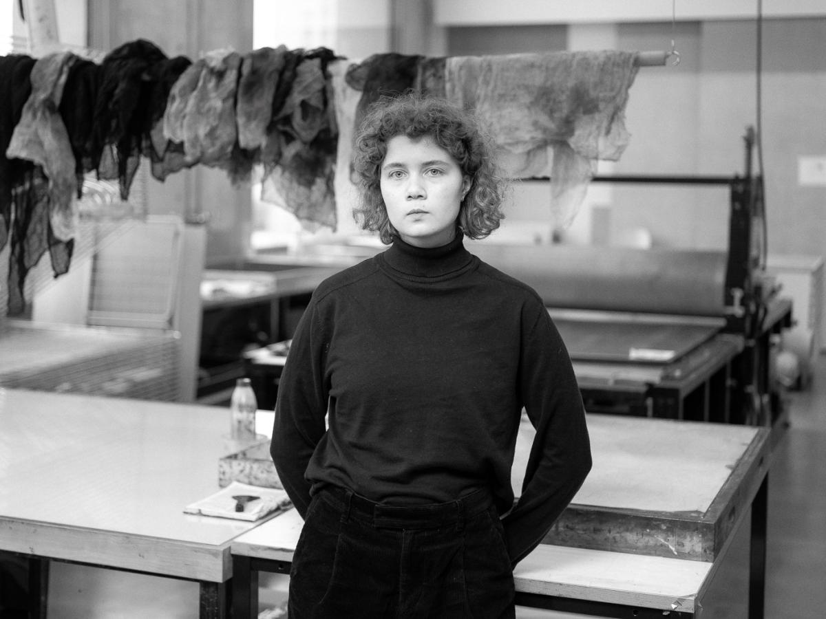 Sofia Vuorenmaa (b. 2001) works primarily with printmaking, drawing and text-based art. She is interested in the event of perception, particularly in sensitive, immersed looking, and how what is sensed is in relation to language. Vuorenmaa’s works build on gestures which, in all their precision, seek to imprecisely understand what is beyond the reach of a defining gaze.
