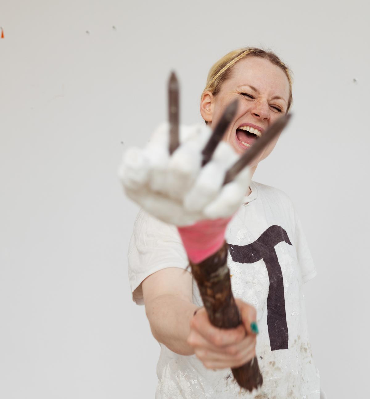 Sofi Häkkinen’s solo exhibition Performing Fisting Forest brings to Tasku Gallery the artist’s sculpture installation with a performance element. The presence of human bodies in the installation and its modification during the performance highlight an important element in Häkkinen’s artistic thinking: hands. In addition to concrete action, they are connected to memory and time. Things are difficult to remember if you cannot touch them – and the thing that hurts the most is time.